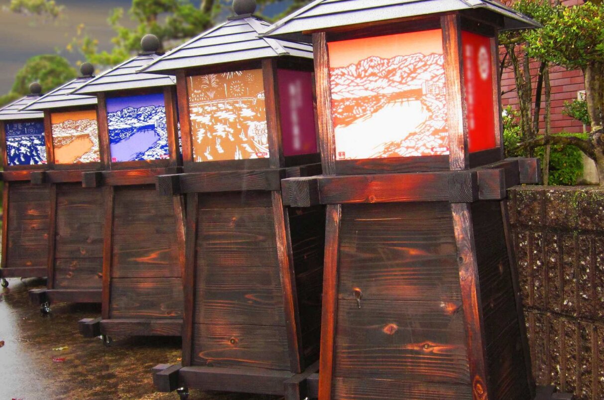 灯篭看板(杉材加工、アクリル板LED内照式) ※水橋地区を中心に100台余りを制作納品させていただきました